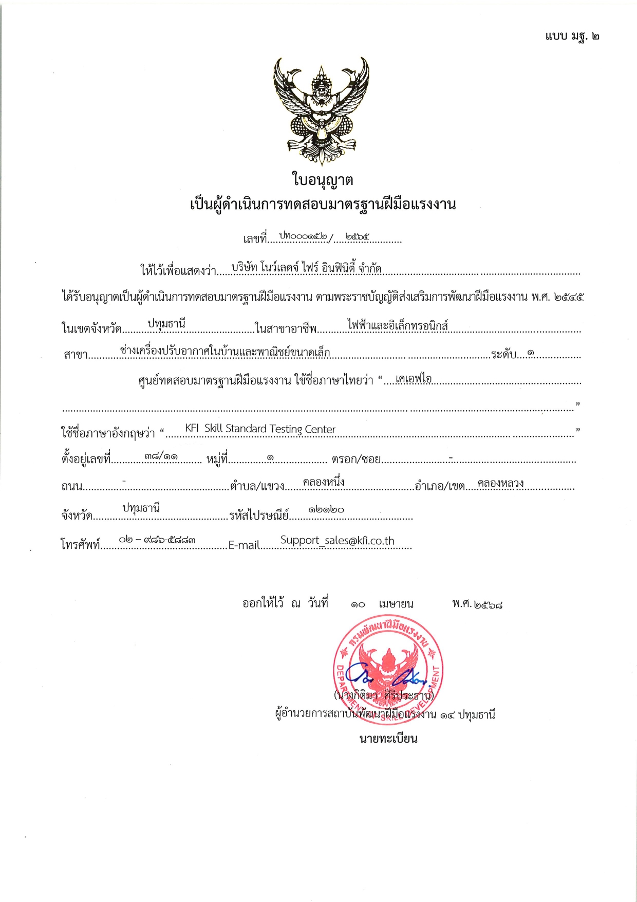| ใบสมัครทดสอบ สาขาช่างเครื่องปรับอากาศในบ้าน | |