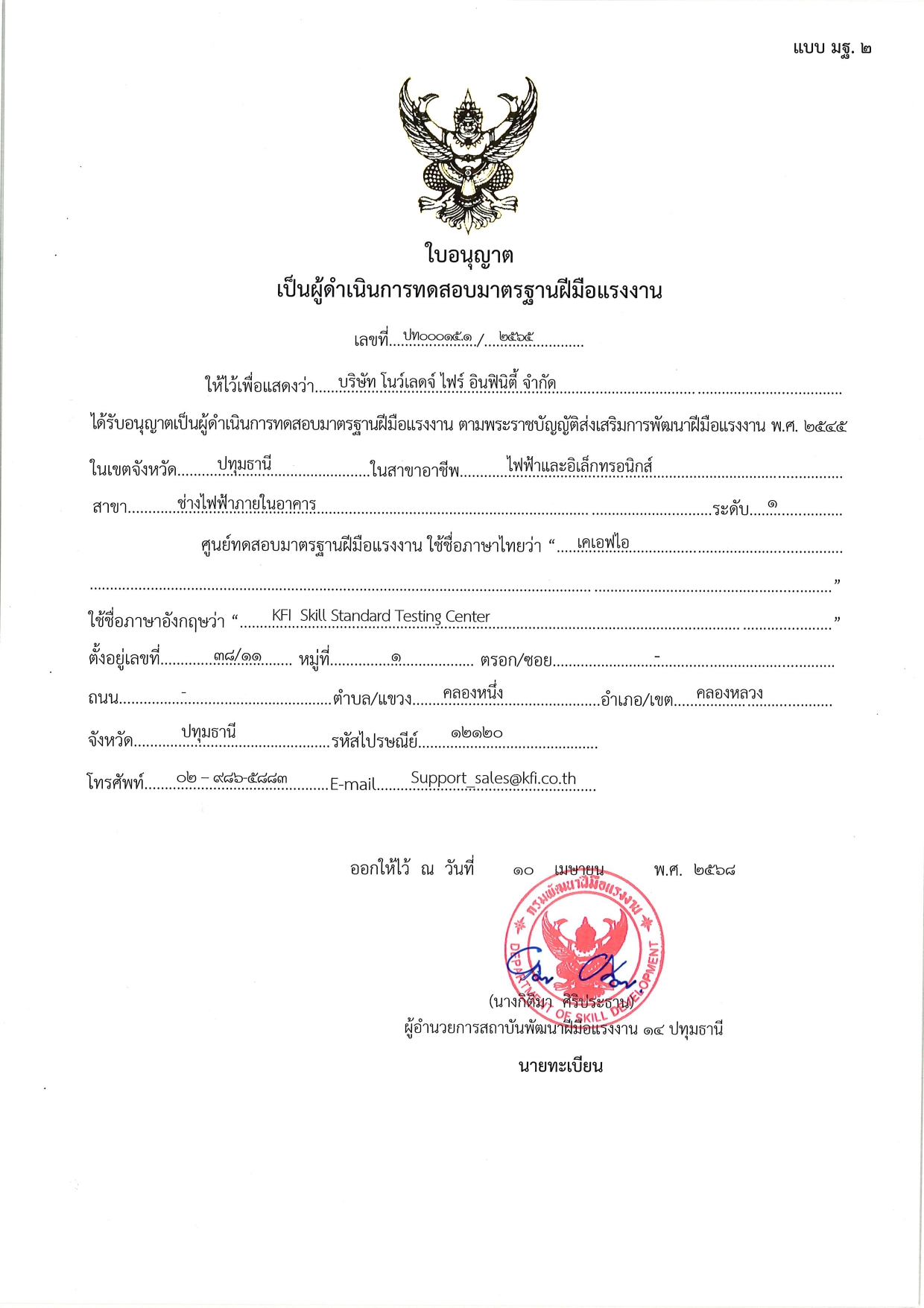 | 2.ใบสมัครทดสอบมาตรฐานฝีมือแรงงาน ช่างไฟฟ้า | |